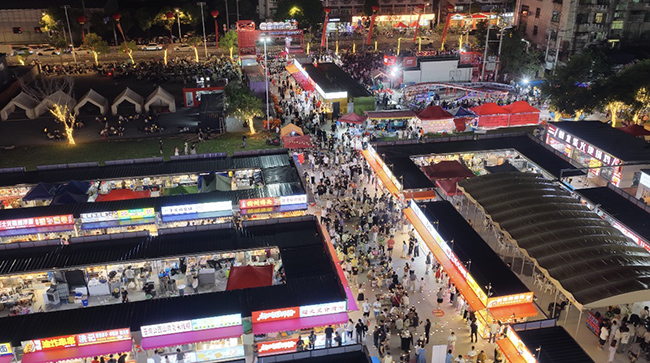 夜幕降臨,華燈初上,緊鄰園博園國際景區(qū)主入口的郭溪·園博共富市集迎來熙攘人流,煙火氣在這里升騰。