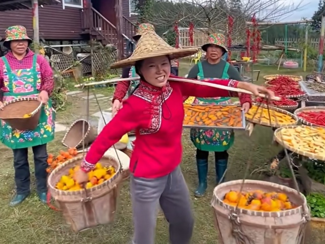 而陳海燕干的則是“細(xì)活”,接待游客靜靜沏茶,細(xì)細(xì)解說(shuō);番薯?xiàng)楋h香的冬日,削皮后需將番薯慢火熬煮五六個(gè)小時(shí),才能塑形晾曬,夜里她就和幫工一起守著灶火。2019年,陳海燕還多了一個(gè)短視頻拍攝的技能。她說(shuō):“那時(shí)正好有位來(lái)農(nóng)場(chǎng)的游客,把孩子玩耍的視頻傳到了抖音。我覺(jué)得很唯美,我想我就在農(nóng)村啊,題材那么多,我怎么就不會(huì)拍呢?”于是,陳海燕開始主動(dòng)求索,線上搜索各種教程,線下參加培訓(xùn)班。夜晚的燈下是夫妻倆的共同課堂,陳海燕鉆研著短視頻拍攝與各類話術(shù),項(xiàng)武義則對(duì)照著資料研究不同果樹的種植技術(shù)與病蟲害防治。項(xiàng)武義曾打趣道,兩人把這功夫用在讀書上估計(jì)早就大學(xué)畢業(yè)了。